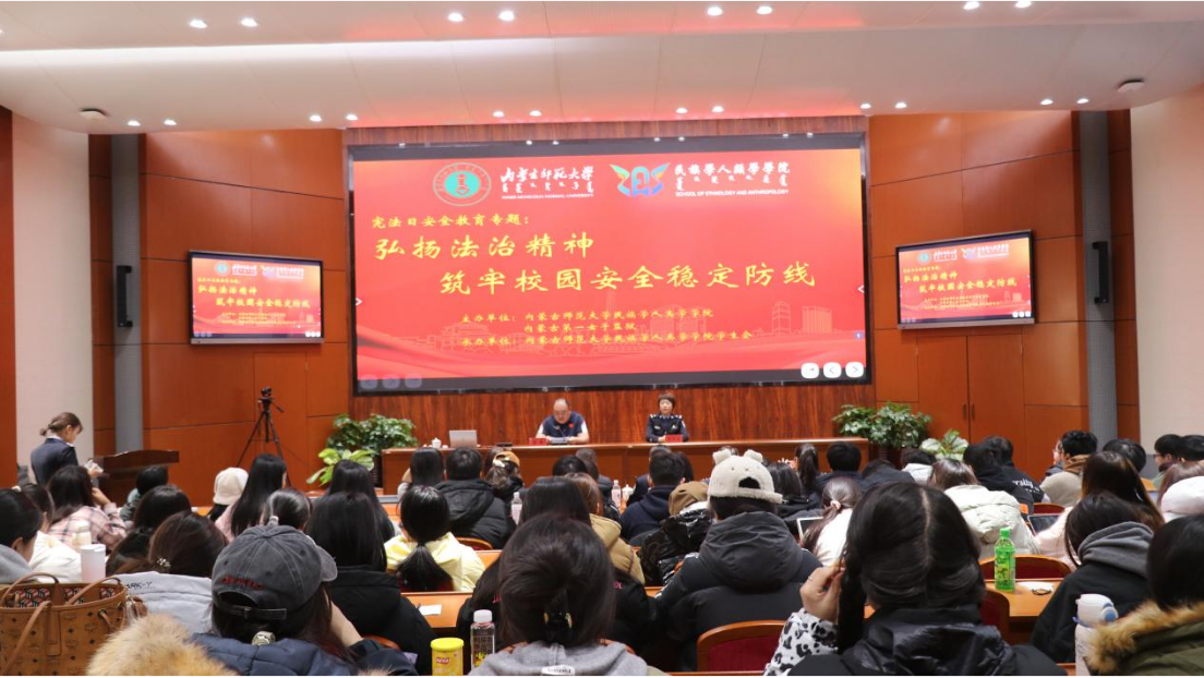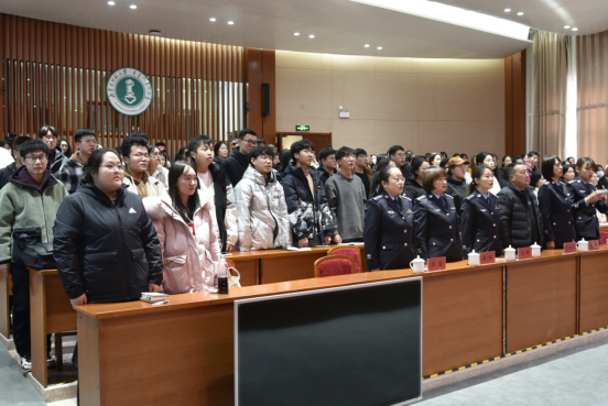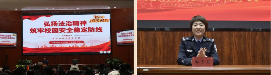 12月4日,正值第十一个宪法日,内蒙古第一女子监狱监区监区长乔子月一行6名干警受邀为best365官网200余名本硕博师生带来《宪法日安全教育专题:弘扬法治精神,筑牢校园安全稳定防线》专题讲座。best365官网团总支书记姜鑫、学生工作与就业办公室主任包双成出席本次讲座,并对监狱干警的到来表示欢迎。