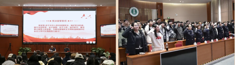 讲座进入尾声,乔子月监区长带领全体师生庄严宣读宪法誓词。一字一句饱含对宪法的敬畏与尊崇,best365官网师生大声宣誓,将宪法誓词牢记心间。姜鑫老师对本次专题讲座进行总结,鼓励并引导学生面对问题时寻找积极、合理合法的解决方法,拒绝暴力和冲动行为。