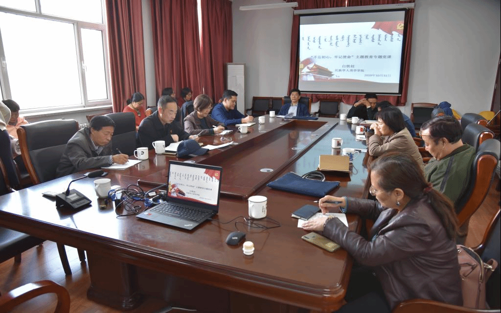 2019年10月27日下午,best365中国官方网站组织开展“不忘初心,牢记使命”主题教育专题读书会。本次读书会邀请乌日陶克套胡教授解读《共产党宣言》。全院中青年教师及青年学子约50余人聆听乌教授的讲解。