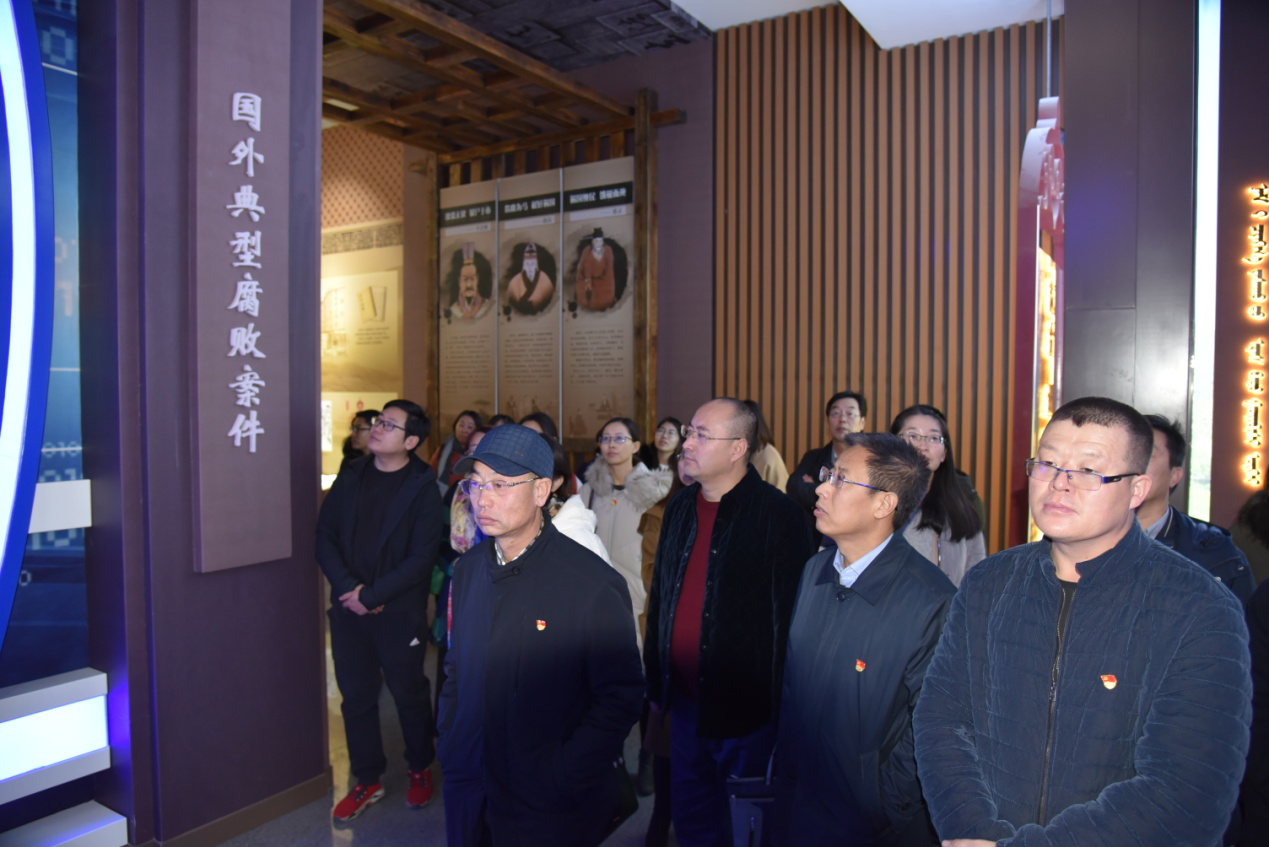 内蒙古自治区廉政教育展厅共分七个部分,在讲解员的带领下,党员干部们边看、边听、边学,分别学习了“史海问廉 以古鉴今”、“惩腐肃贪 世界纵览”、 “从严治党 坚定不移”、“以案明纪警钟长鸣”、“人生悲剧千古悔恨”、“人民公仆勤廉楷模”、“激浊扬清尽责圆梦”等内容。