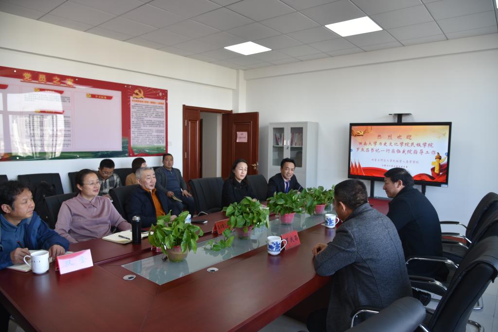 3月22日下午,西南大学历史文化学院民族学院罗庆昌书记、田阡教授一行应邀来best365官网考察指导,并在best365官网田楼611党建活动室举行座谈会。best365官网参加座谈会的有:党总支书记包凤兰、院长乌日陶克套胡、副书记副院长阿荣、副院长满达以及总支委员王瑞军、总支委员杨冰华、教工支部书记双金、行政支部书记包双成、学生支部书记朱苏道等。