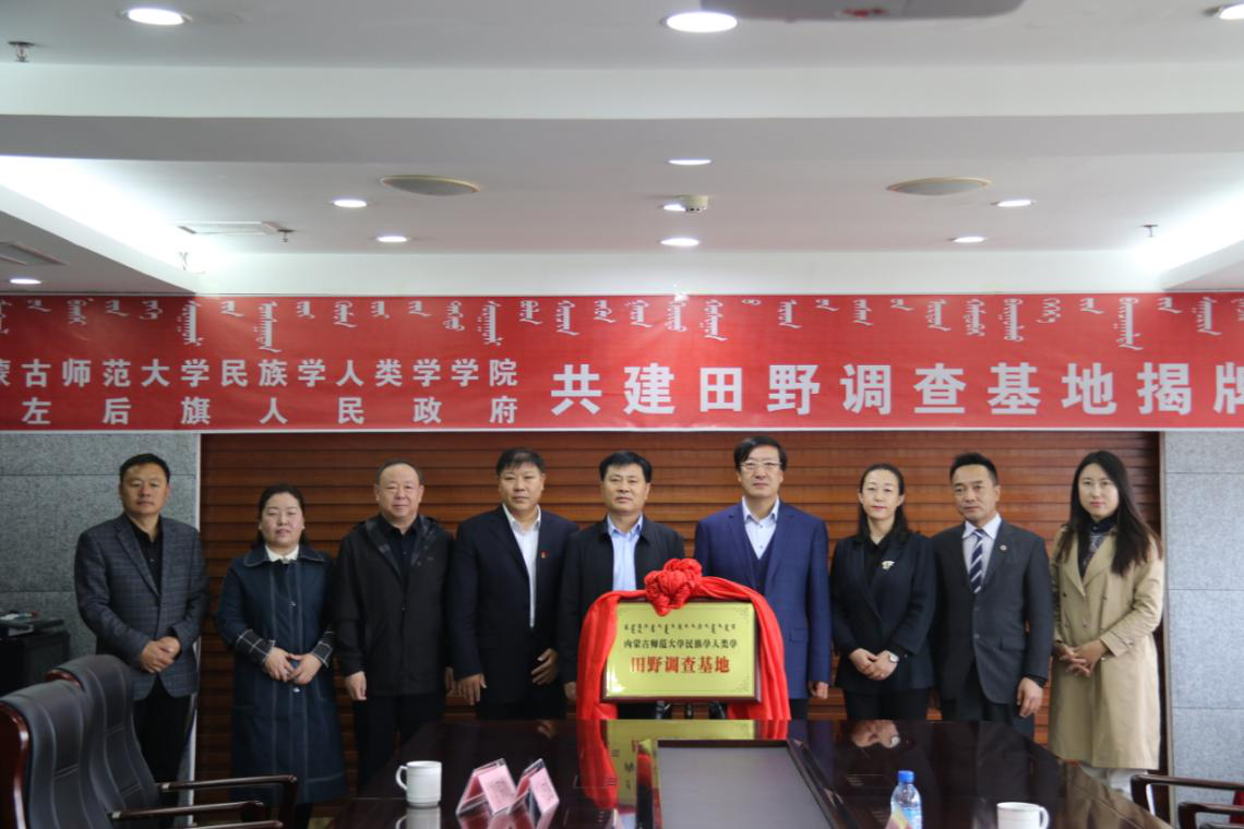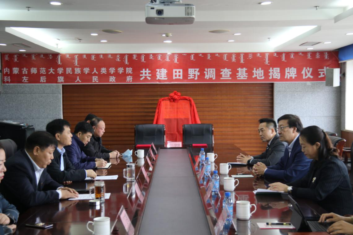 2021年4月23日上午,best365中国官方网站与科左后旗人民政府共建“田野调查基地”揭牌仪式,在内蒙古通辽市科左后旗甘旗卡人民政府办公室隆重举行。科左后旗旗长何志伟、常务副旗长于有志、统战部部长德力根昌及科左后旗民委、文旅局等部门相关负责人出席本次挂牌仪式。我校副校长王来喜、best365中国官方网站党总支书记包凤兰、副院长满达及科研办公室负责人范尊参加本次会议,会议由德力格昌主持。