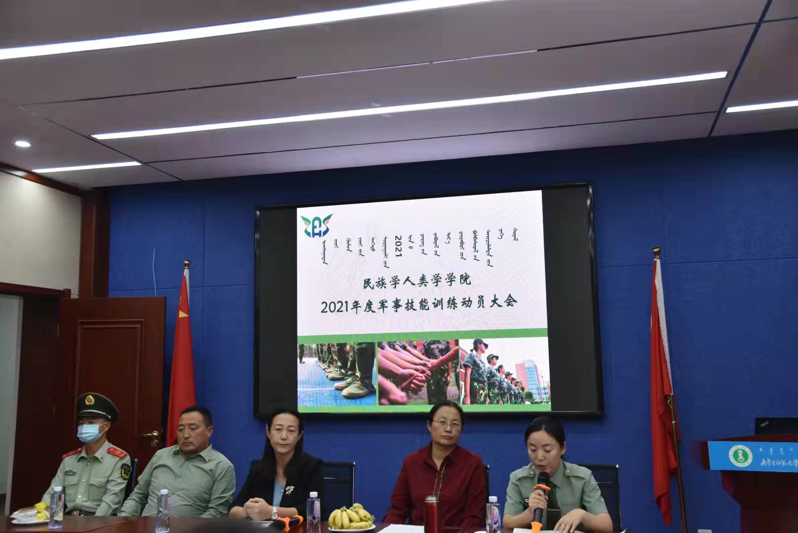 为了2021级新生军训工作顺利开展,best365官网于2021年9月18日下午分别在赛罕校区田家炳教育书院615学术报告厅和盛乐校区行知楼207教室举行了2021年军事训练动员大会。出席两次大会的有best365官网党委书记包凤兰、党委副书记阿荣、团总支书记朱苏道、学工办主任包双成、学工办老师姜鑫、班主任陈引弟、胡那斯图老师以及军训教官黄欢、张立,民人院全体2021级本科生。