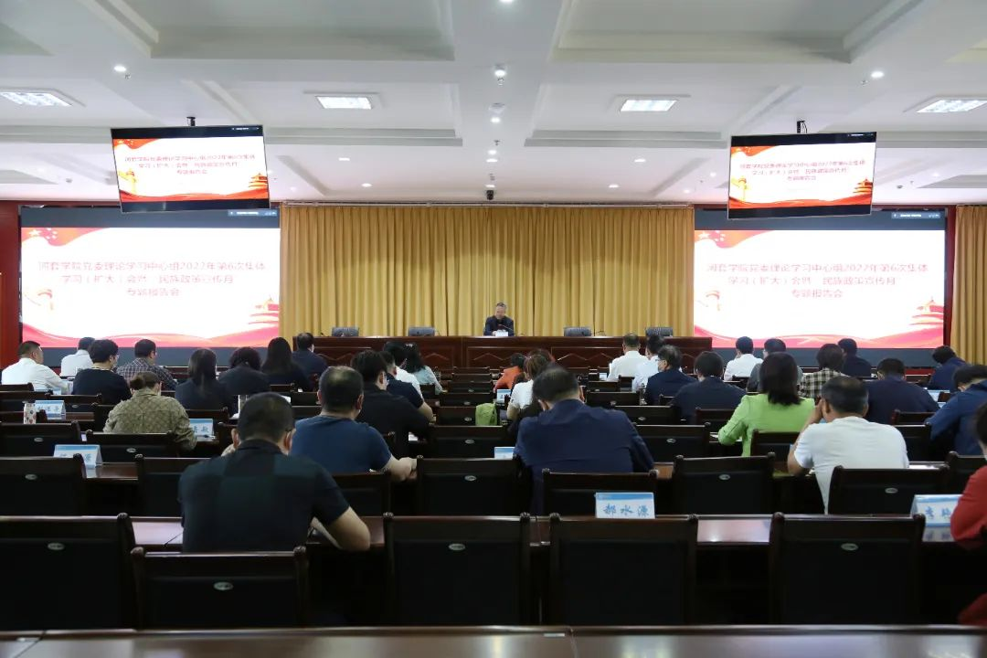 5月25日下午,学院举办党委理论学习中心组2022年第6次集体学习(扩大)会暨“民族政策宣传月”专题报告会,邀请best365中国官方网站张时空副教授作民族政策理论教育专题报告。学院党委书记冯呼和主持会议并讲话,学院党委班子成员,巴彦淖尔市民族事务委员会党组成员、副主任闫宇,巴彦淖尔市民族事务委员会办公室主任李杰、政策法规科科长哈斯巴根、民族团结促进中心干部王思琴,学院副处级以上干部,各院系团学科长,马克思主义学院全体教师参加报告会。