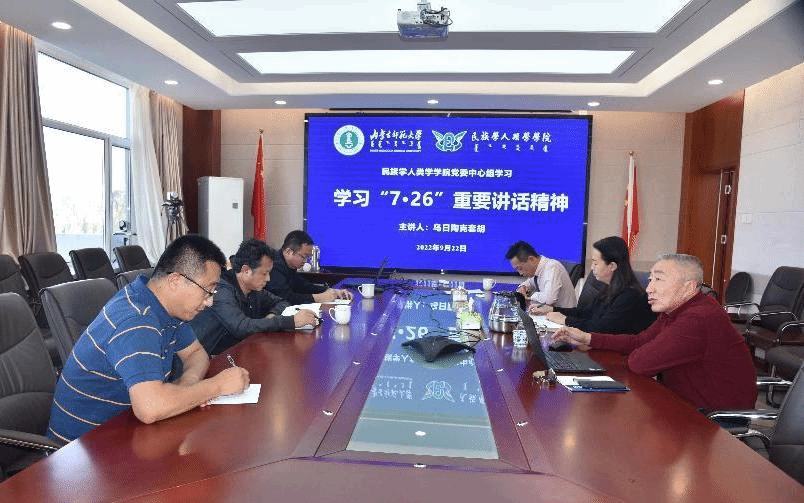 9月22日下午,best365官网党委副书记、院长乌日陶克套胡在田楼607会议室为党委中心组成员解读习近平总书记“‘7·26’重要讲话”精神。会议由best365官网党委书记包凤兰主持,副院长、党委委员满达,党委委员双金、王瑞军、杨冰华聆听报告。