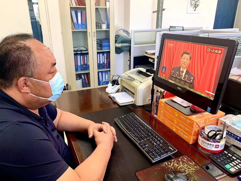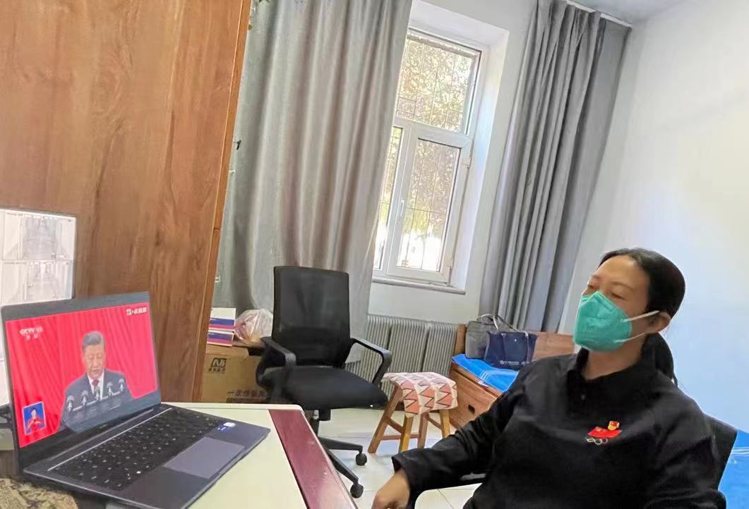 由于疫情影响,广大教工和师生都在家里、学校封控管理。虽然无法集体收看,但大家依旧通过电脑、手机、电视等方式收看直播,为“二十大”顺利召开而自豪。