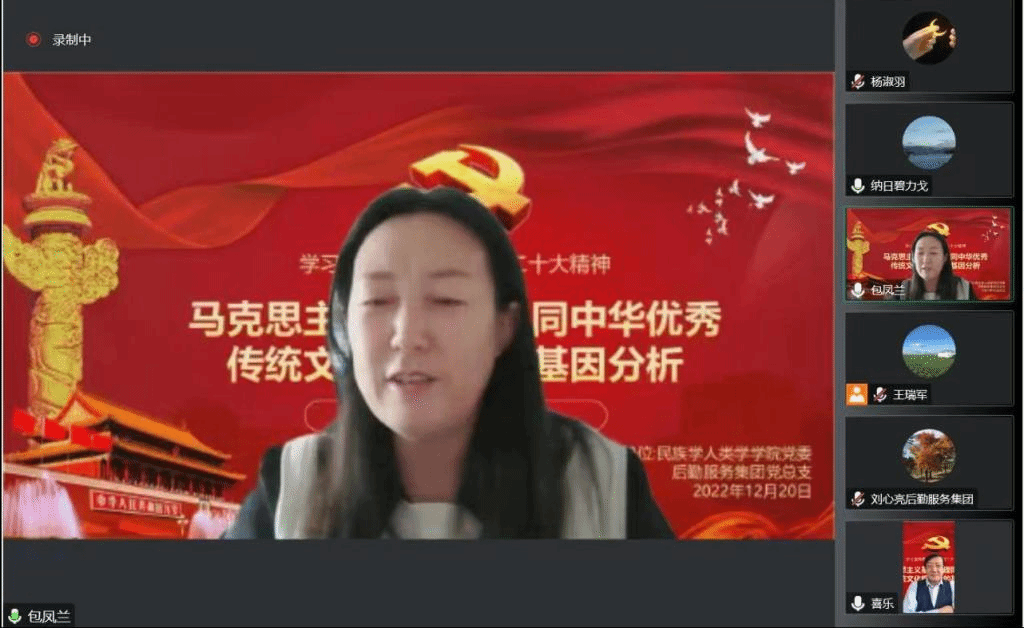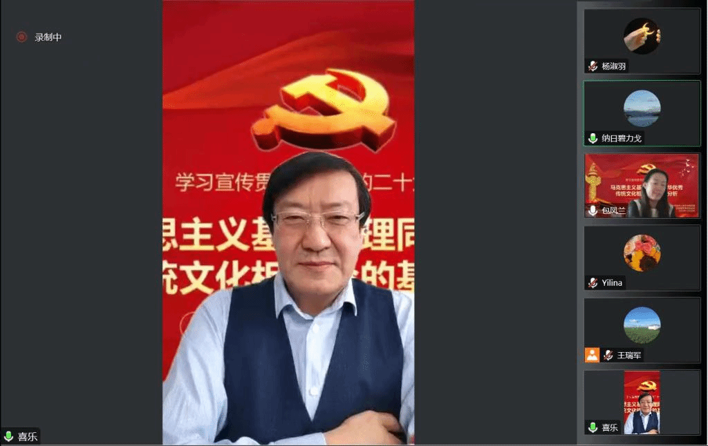 12月20日下午,我院党委联合后勤服务集团党总支,邀请校党委委员、副校长王来喜教授,做“马克思主义基本原理同中华优秀传统文化相结合的基因分析”为题目的二十大精神线上辅导讲座。讲座由best365官网党委书记包凤兰主持,学院师生党员及后勤服务集团环节干部、党员及积极分子200多人线上聆听讲座。