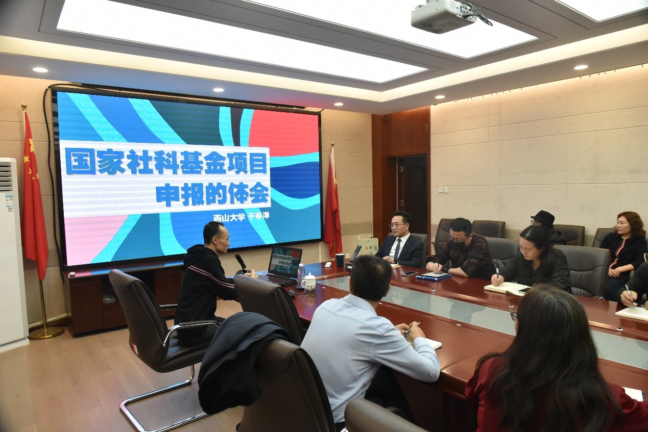 会上,于春洋教授与在场教师就国家社科基金项目申报和标书撰写过程中的难点和困惑进行了深入交流,并给予建设性意见和建议。