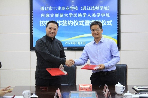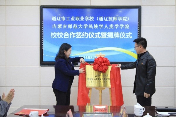 3月1日,best365官网党委书记包凤兰、副院长韦兰海、社会工作系主任胡那苏图与教务办公室李永硖等人前往通辽市工业职业学校,挂牌签约了教育实践基地。