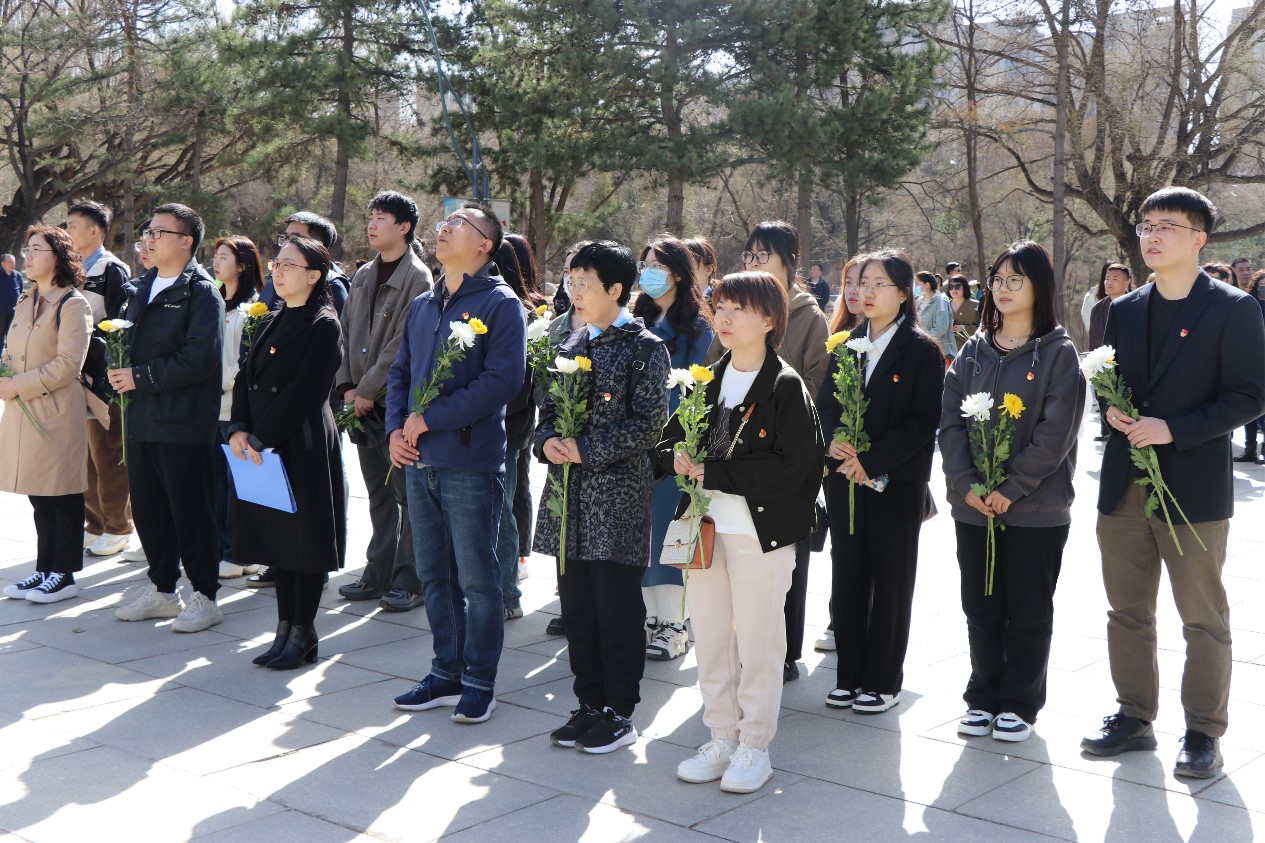 党员师生以庄严的姿态和崇高的敬意参与祭奠活动,全体参与者整齐列队,向革命先烈致敬,在肃穆的国歌声中,向为国家和民族献出生命的英雄们默哀缅怀。
