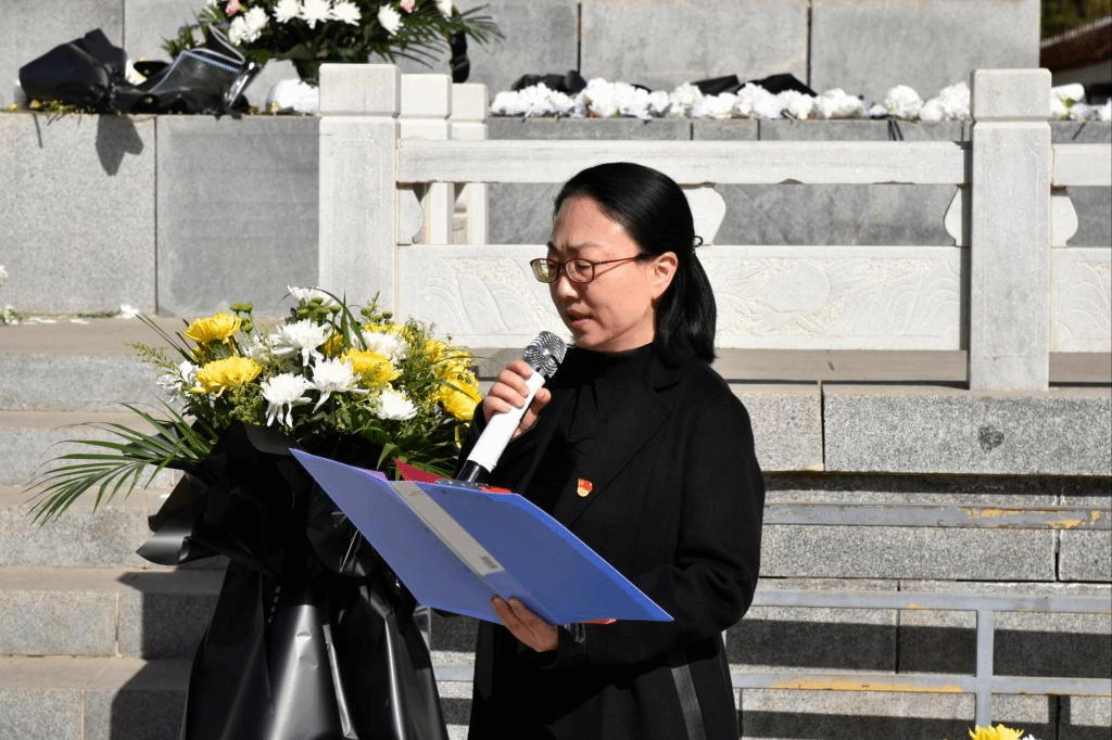 党委副书记副院长陆一琼在烈士纪念碑前发表讲话。她回顾了烈士们的英勇事迹,号召大家要铭记历史、缅怀英烈、珍惜和平,继承和发扬革命先烈坚韧不拔、英勇不屈的革命精神,在本职岗位上主动担当作为,为建设美好祖国贡献自己的力量。讲话结束后,陆一琼书记带领全体党员师生重温入党誓词。