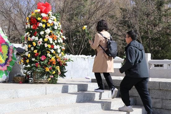 习近平总书记指出:“我们要在全社会树立崇尚英雄、缅怀先烈的良好风尚。对为国牺牲、为民牺牲的英雄烈士,我们要永远怀念他们,给予他们极大的荣誉和敬仰,不然谁愿意为国家和人民牺牲呢?”为深入贯彻落实习近平总书记重要指示精神,4月2日上午,在党委副书记副院长陆一琼的带领下,best365中国官方网站师生党员代表赴呼和浩特市青城公园英雄纪念碑开展“清明”祭扫活动,缅怀先烈,寄托哀思。