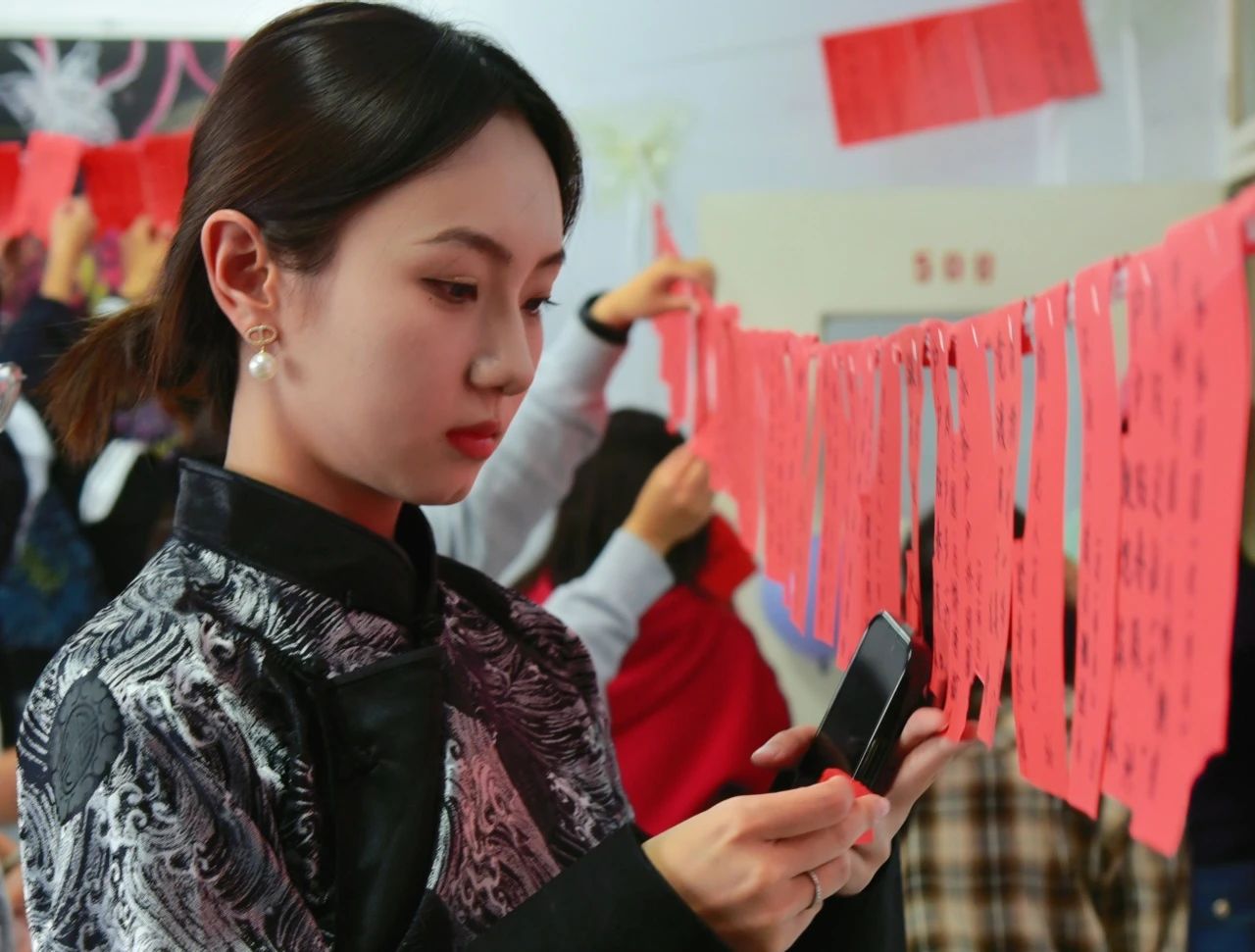 茶话会上,学院精心策划了民族团结知识猜谜游戏,百余副字谜题目涵盖了党史国史、各民族知识、传统文化等多个领域,既考验了同学们的智慧,又增强了大家对中华民族多元一体的认同感。老师和同学们争相竞猜,活动现场充满了欢声笑语。学院为猜中谜底的同学们准备了精心挑选的小礼物,每一份礼物都承载着对同学们的鼓励和对学院各民族同学互亲互爱共同进步的期许。