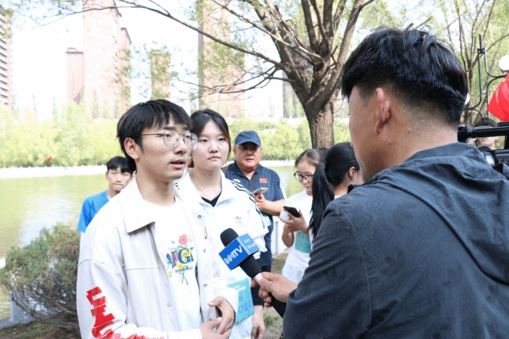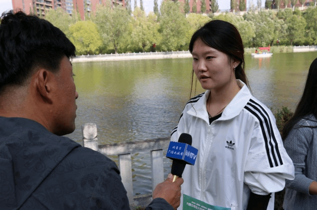 阳光照耀下的乌兰湖波光粼粼,best365官网师生在湖边集结热身,绕湖而行。best365官网代表队整齐前进,他们一边舒展筋骨,一边欣赏湖畔的美丽风光。秩序井然的队伍引起内蒙古日报记者的关注并对best365官网学生进行采访。参赛选手王周璇和学生干部黄长江在接受内蒙古日报采访时,脸上洋溢着自信与喜悦。