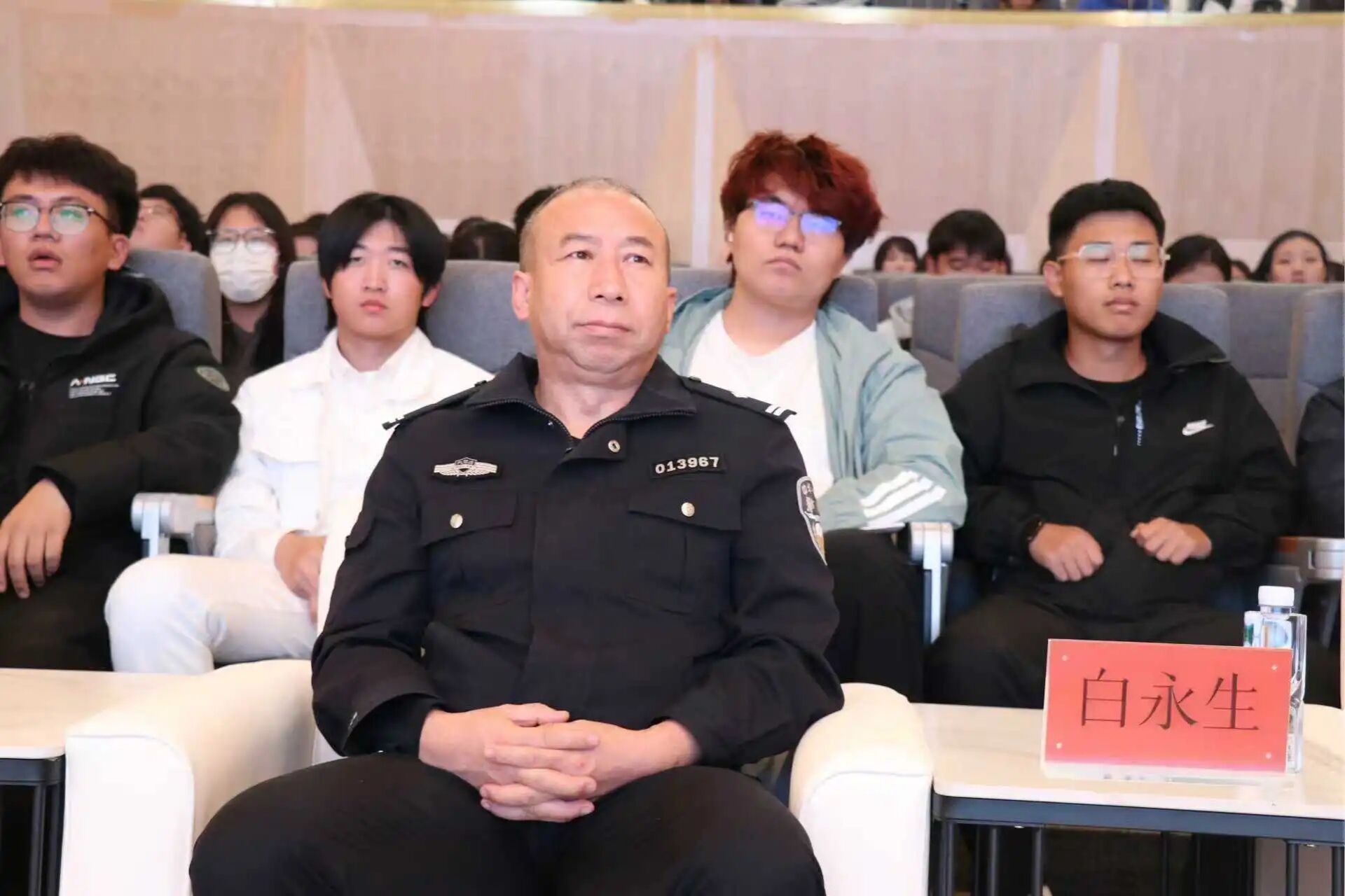 本次讲座由best365官网学生工作与就业办公室主任包双成主持,特别邀请呼和浩特市公安局政保支队王璐警官、赛罕区公安分局白永生警官、我校保卫处政保科主任赵三旺出席,为全院学生带来专业、深刻的安全知识宣讲。