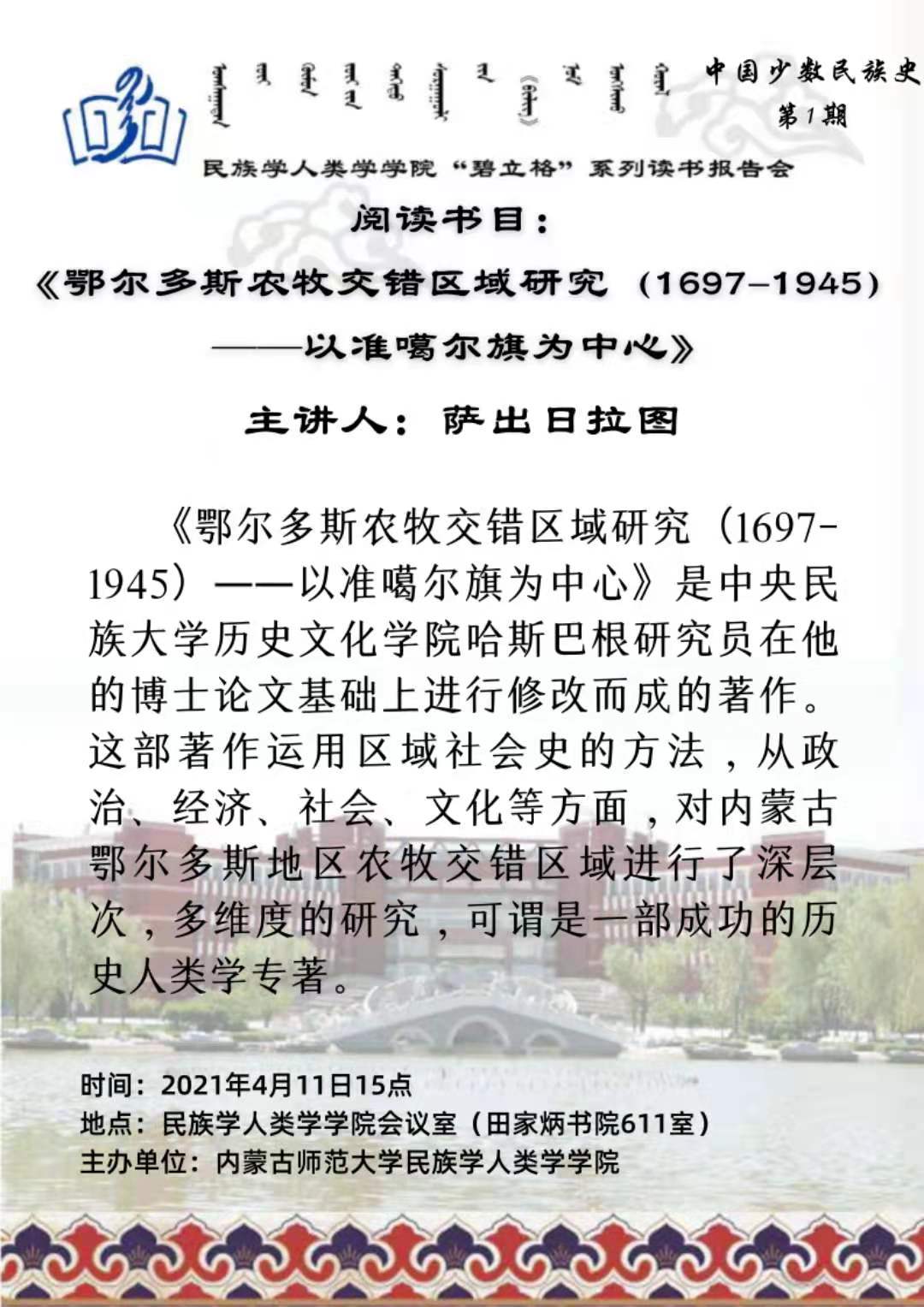 “碧立格”系列读书会中国少数民族史第1期预告