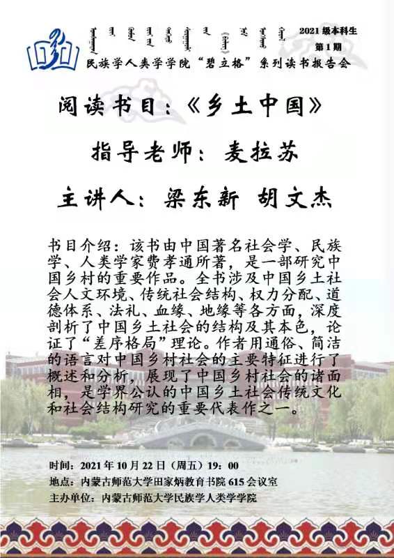 “碧立格”系列读书会民族学专业本科生第1期预告