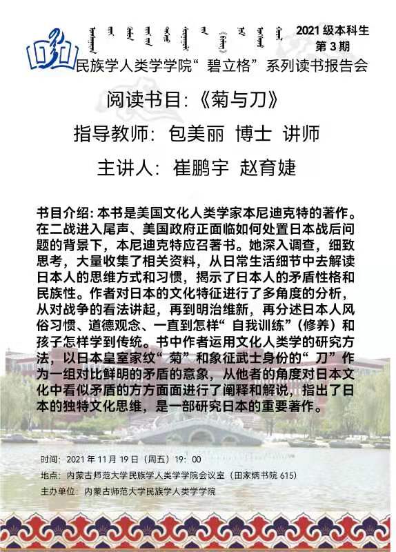“碧立格”系列读书会民族学专业本科生第3期预告