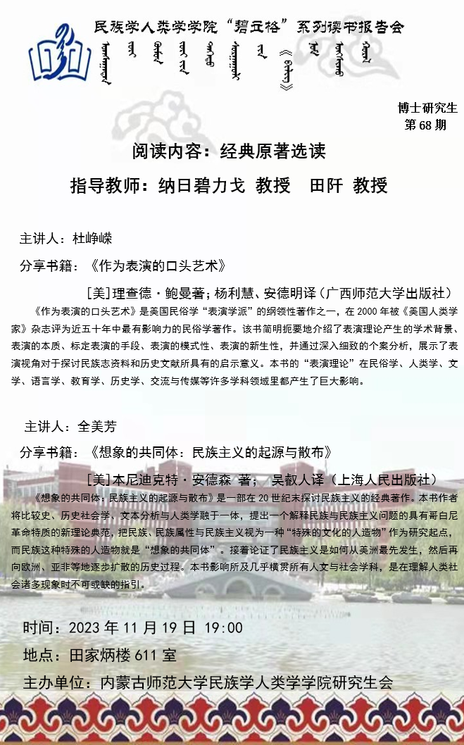 best365中国官方网站“碧立格”系列读书报告会预告博士研究生第68期