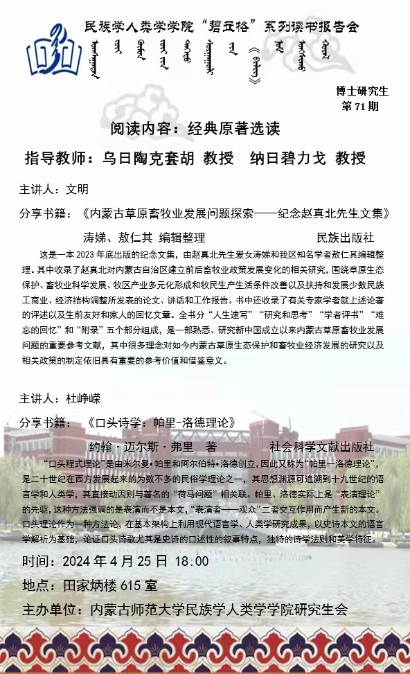 best365中国官方网站“碧立格”系列读书报告会预告博士研究生第71期