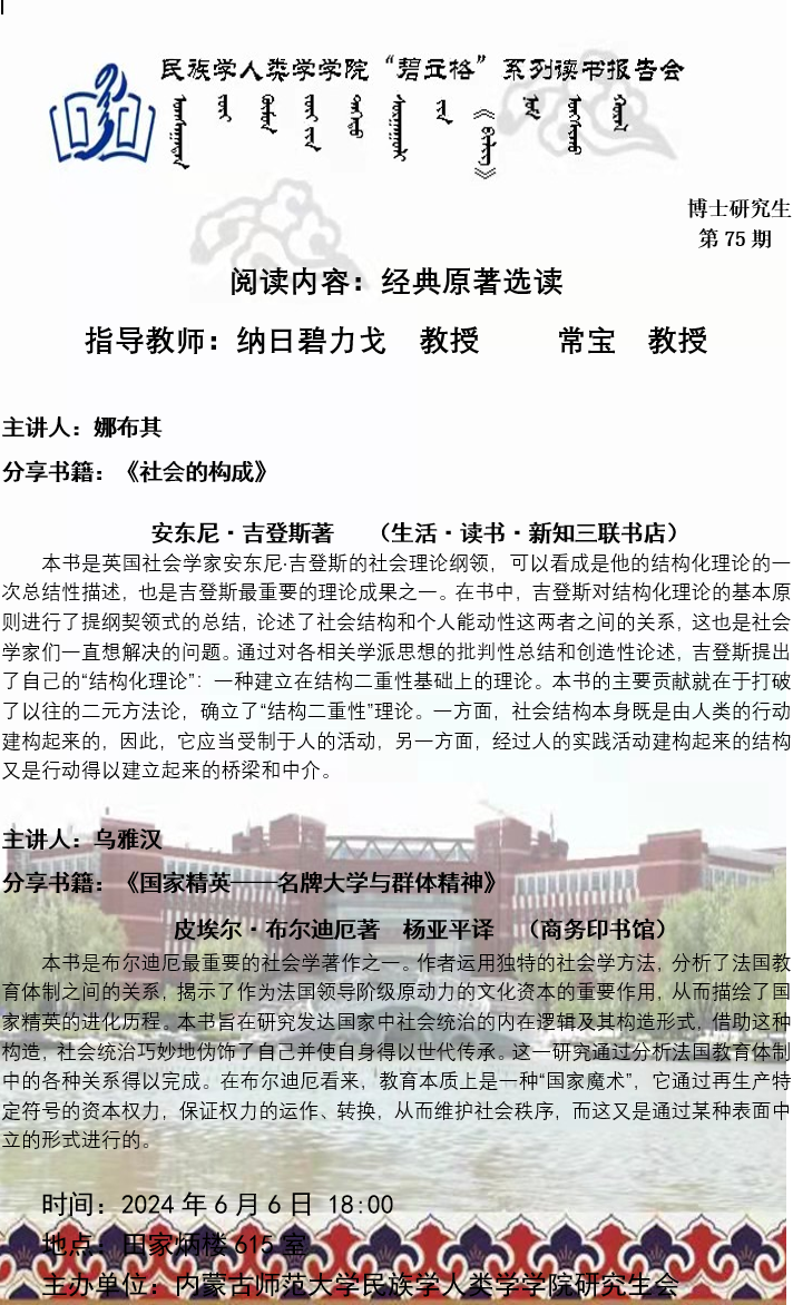 best365中国官方网站“碧立格”系列读书报告会预告博士研究生第75期