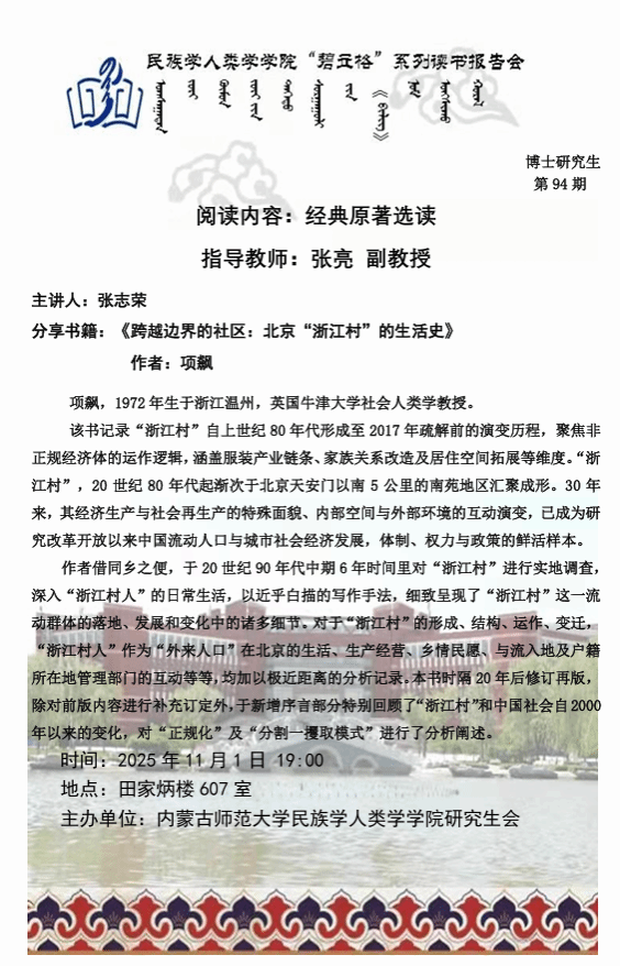 best365中国官方网站“碧立格”系列读书报告会预告博士研究生第93期