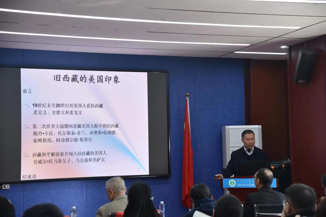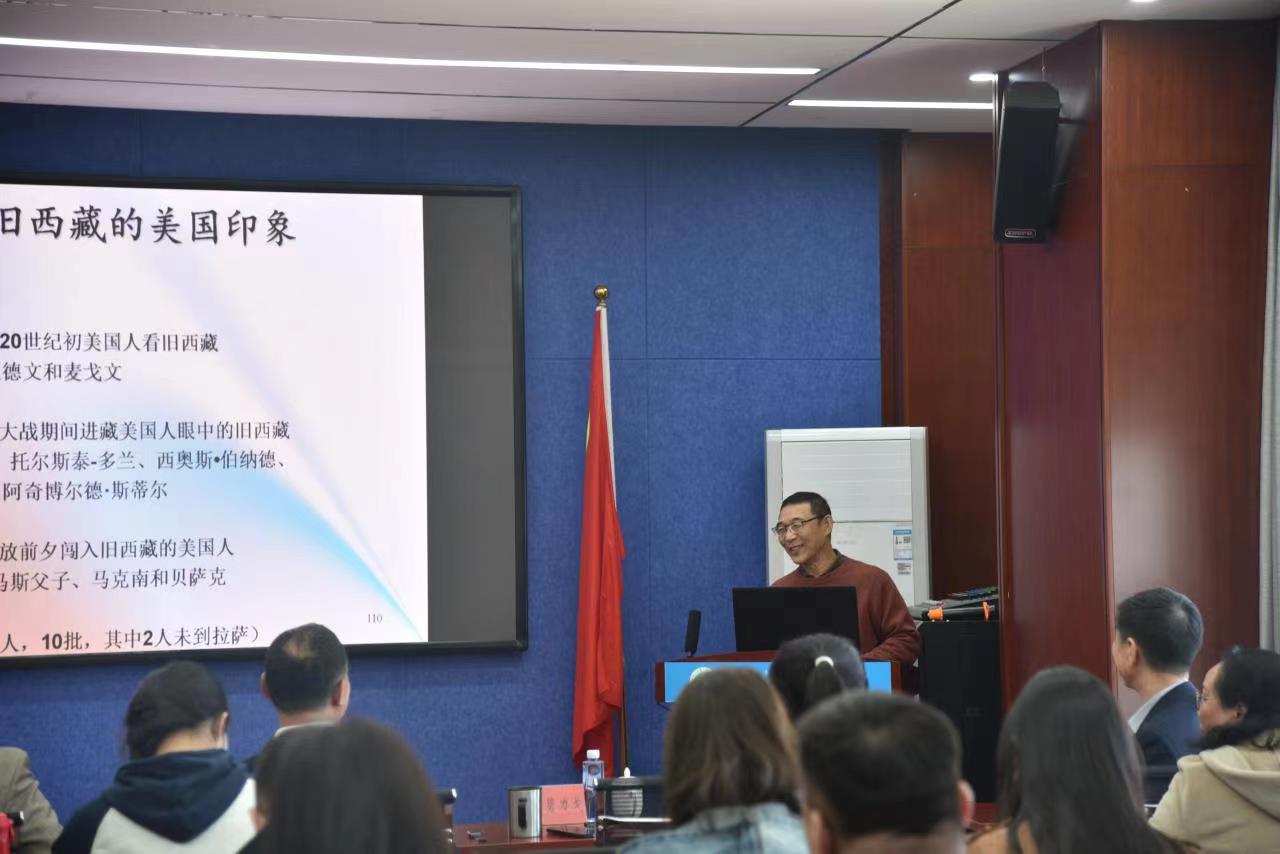 胡教授从近代史上中美两国首次交往着眼,讲述在近代列强侵犯瓜分中国的形势下,美国的对华战略及其“门户开放”政策。接着描述第二次世界大战期间美国对西藏问题的立场。第二次世界大战爆发后,西藏形势发生变化,国民政府通过“援美制英”坚决抵制企图分裂西藏的阴谋活动,当时美国政府在涉藏问题上也明确支持中国政府的立场。第二次世界大战后,大国之间的冷战格局形成,中国国内陷入内战。1949年新中国成立,国内外形势再次发生变化,由于西藏具有“重要的地缘政治意义”,美国在的涉藏立场也逐渐发生转变,一改所保持的观望立场,不再强调西藏是中国不可分割的一部分,转而企图分裂西藏,以达到遏制和削弱新中国的目的。最后,胡岩教授分析了美国涉藏政策的实质。他指出,美国作为近代以来侵略中国的列强之一,虽然后来承认西藏是中国的一部分,但实质上是为了维护美国自身的利益。认清美国政府涉藏政策的伪善和颠覆性本质,可以使我们更好地掌握西藏近代史,增强维护国家统一的爱国意识,铸牢中华民族共同体意识。