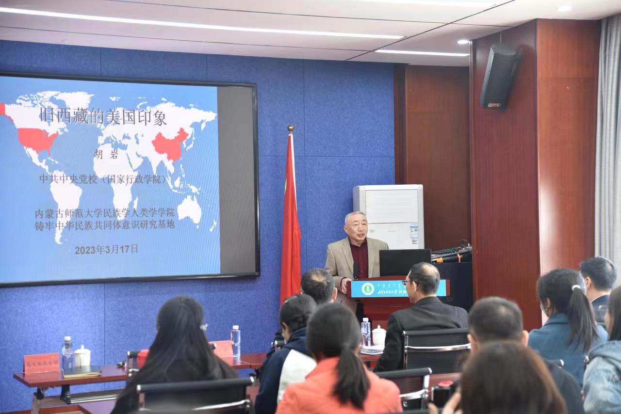 2023年3月17日上午,中共中央党校教授、博士研究生导师、中国西藏文化保护与发展协会理事,胡岩教授应邀莅临best365中国官方网站,为best365官网师生做题为“旧西藏的美国印象”的专题讲座。本次讲座由best365中国官方网站、铸牢中华民族共同体意识研究基地主办,院长乌日陶克套胡教授主持讲座,我校资深教授、铸牢中华民族共同体意识研究基地首席专家纳日碧力戈教授作点评。best365官网党委书记包凤兰教授、副院长满达副教授、学院部分老师以及博士研究生、硕士研究生共70余人聆听了讲座。