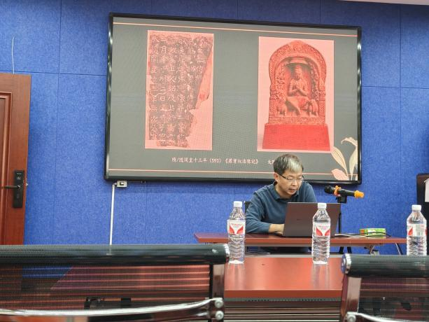 康鹏主任以《辽代石刻与辽史研究》为题,从辽代石刻史料简述”“辽代墓志的书写格式”“契丹文石刻早期发现史”“辽代墓志研究法及其反思四个部分,分别介绍了辽代石刻史料简况以及相关工具书、网站,重点讲解了辽代石刻文字的左行书写特例、契丹文字发现史的最新观点,重新反思石刻资料的史学价值,探索石刻史料研究的新路径。