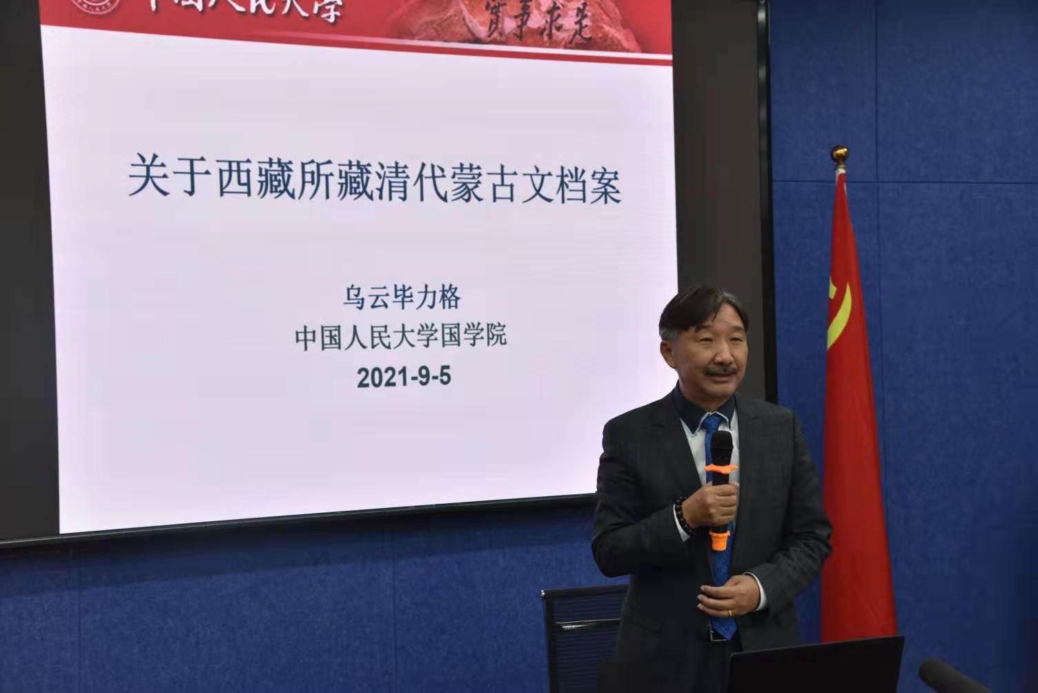 乌云毕力格教授根据其若干年来对西藏档案馆所藏蒙古文档案的整理与研究,主要从西藏的蒙古语文历史背景、历朝皇帝颁发的蒙古文敕谕、部院及其官员的蒙古文公牍、驻藏大臣文书、清朝大臣将军等致西藏僧俗贵族的私信等几个方面,就蒙古语文在清朝统治西藏期间的地位和作用问题进行了介绍和讨论。