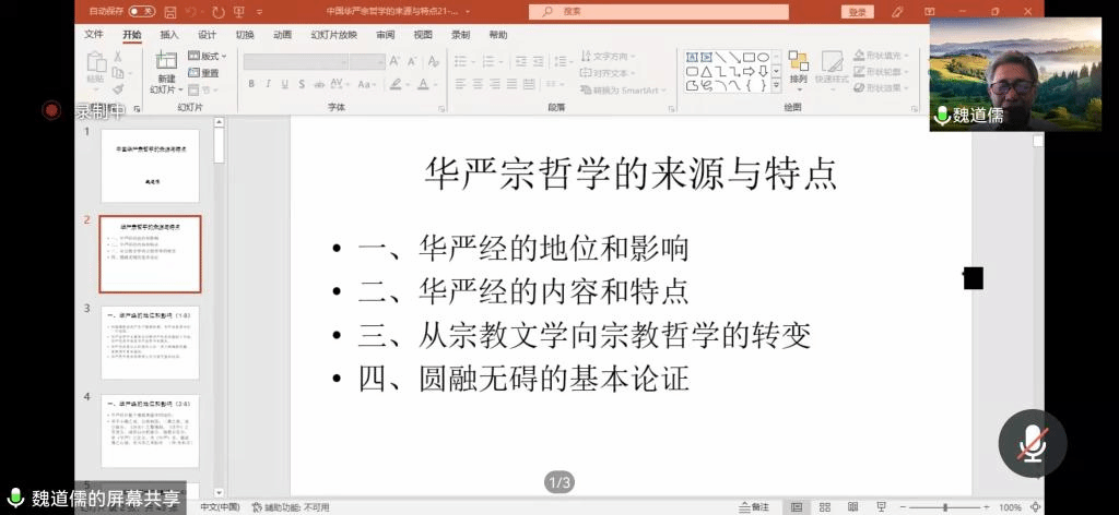 10月26日下午的“佛学文化研究院‘智慧甘露’系列讲座”由满达副院长主持,主讲人魏道儒先生做了题为“佛教与中国传统文化”的精彩讲座。在线参加此次学术活动的包括best365官网20级民族学本科生和宗教学研究生,此外还有best365官网与音乐学院、学报编辑部的10余位老师。