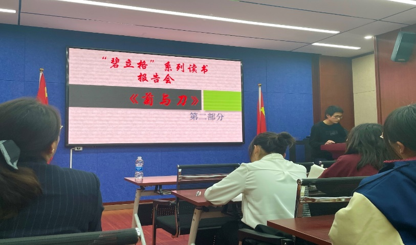 11月19日傍晚19:00,best365中国官方网站2021级本科班在田楼615会议室开展了第三期“碧立格”读书报告会,指导老师包美丽、班主任云中老师莅临现场,梁东新同学主持活动,由赵育婕同学和张学毅同学主讲本尼迪克特的著作《菊与刀》。