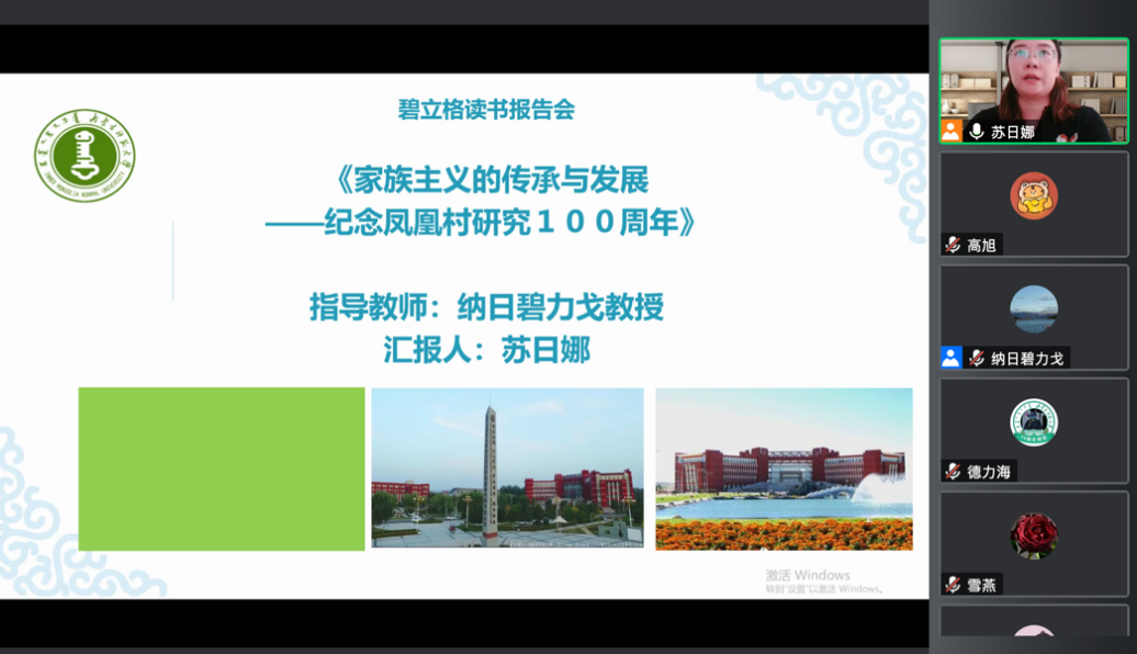 2022年4月24日下午3:00,best365中国官方网站2021级、2020级博士研究生通过“腾讯会议”举行了第35期读书报告会。本次读书报告会的汇报者是来自2021级民族学专业的苏日娜和高旭两位博士生。best365中国官方网站首席专家、博士生导师纳日碧力戈教授出席了本次读书报告会并进行指导,2021级博士生高旭主持报告会。