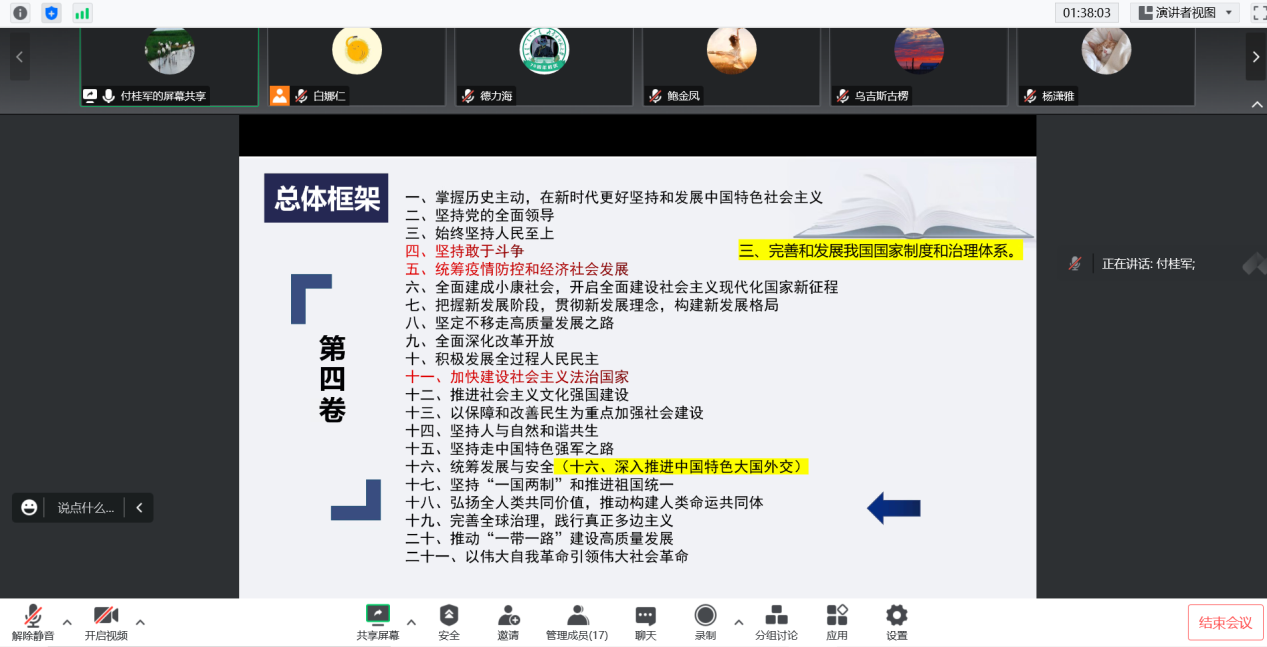2022年11月6日19:00,best365中国官方网站2021级、2022级博士研究生通过“腾讯会议”举行了第47期读书报告会。本次读书报告会中白娜仁同学和付桂军同学分别分享了《像人类学家一样思考》和《习近平谈治国理政》第四卷两本书。