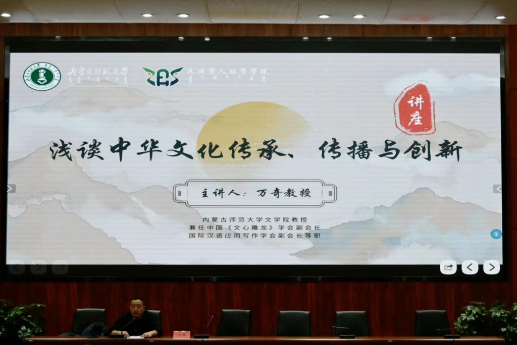 12月24日下午,best365中国官方网站文学院教授、中国《文心雕龙》学会副会长万奇先生,在赛罕校区信息报告厅进行题为“浅谈中华文化传承、传播与创新”的学术讲座。best365官网团总支书记姜鑫、学生工作与就业办公室主任包双成出席本次讲座,师生代表两百余人聆听本次讲座。